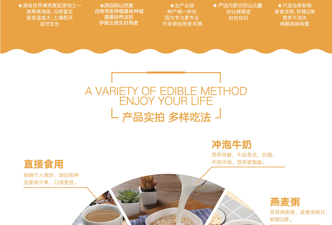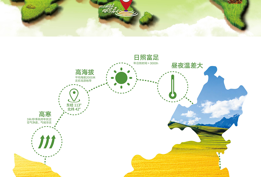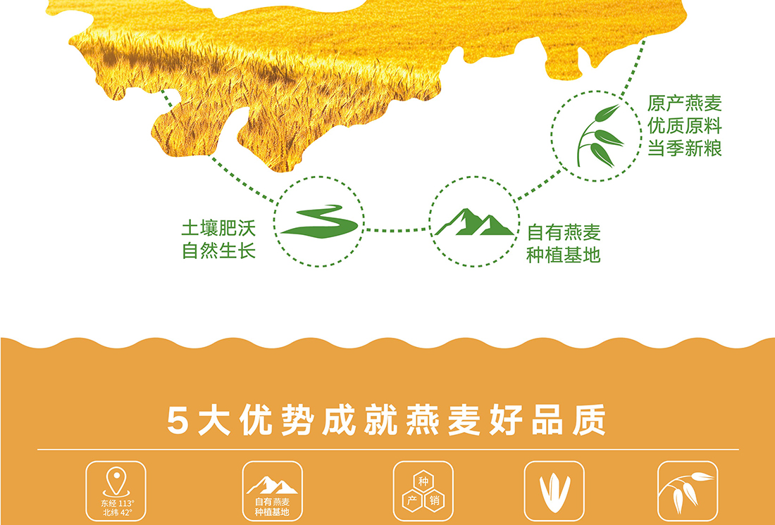 內蒙古,世界裸燕麥起源地之一;陰山源生燕麥在此初生滿足生長規(guī)律一切所需,高寒、高海拔、日照充足;遵循自然法則,靠天滋養(yǎng),自然生長;