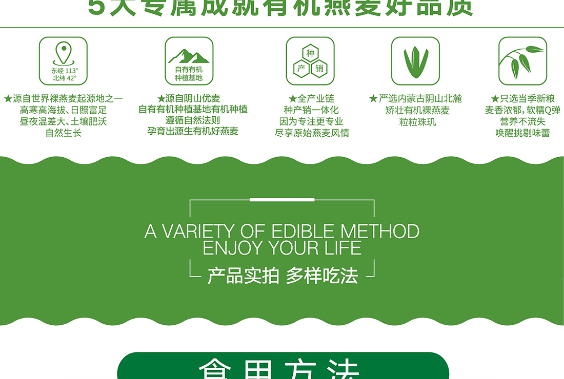 內(nèi)蒙古,世界裸燕麥起源地之一;陰山源生燕麥在初出生滿足生長規(guī)律一切所需,高寒、高海拔、日照充足;遵循自然法則,靠天滋養(yǎng),自然生長;
