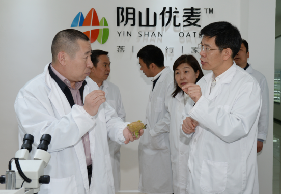 民豐種業(yè)董事長(zhǎng)盧文兵對(duì)公司近年來(lái)的發(fā)展情況以及企業(yè)三產(chǎn)融合的實(shí)施布局情況向黃志強(qiáng)副主席進(jìn)行了詳細(xì)的匯報(bào)。近幾年,民豐種業(yè)已發(fā)展成為中國(guó)集馬鈴薯、燕麥研發(fā)、種子生產(chǎn)、分級(jí)加工、物流倉(cāng)儲(chǔ)、推廣銷(xiāo)售于一體的現(xiàn)代化農(nóng)業(yè)企業(yè),是農(nóng)業(yè)產(chǎn)業(yè)化國(guó)家重點(diǎn)龍頭企業(yè)、國(guó)家高新技術(shù)企業(yè)、自治區(qū)扶貧龍頭企業(yè)。子公司陰山優(yōu)麥已發(fā)展成為中國(guó)燕麥深加工企業(yè),是自治區(qū)農(nóng)業(yè)產(chǎn)業(yè)化重點(diǎn)龍頭企業(yè)和自治區(qū)扶貧龍頭企業(yè),所生產(chǎn)的燕麥米、燕麥片、燕麥餐杯、燕麥高纖素等燕麥?zhǔn)称蜂N(xiāo)往全國(guó)二十多個(gè)省市,成為百姓餐桌上的大健康食品。子公司蒙薯食品“年產(chǎn)8000噸低溫油炸薯?xiàng)l、2000噸胡蘿卜脆片加工項(xiàng)目”也將于今年投產(chǎn)。