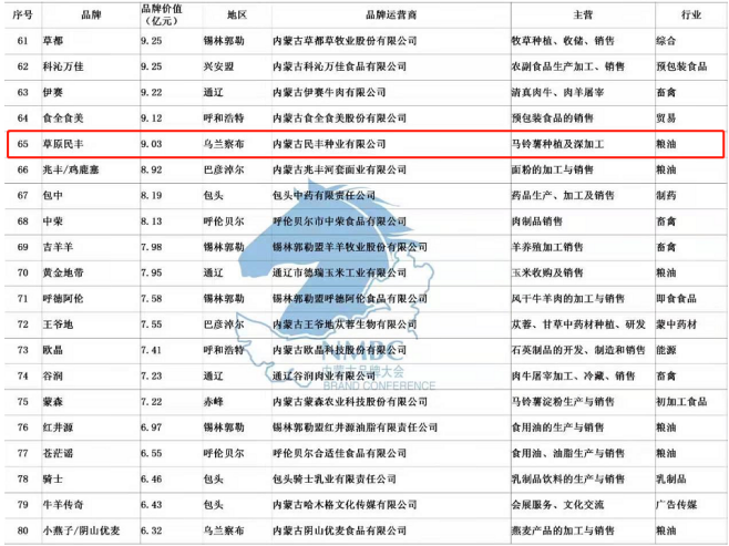 公司注冊有種薯“草原民豐”、鮮薯“敕勒川”和“塞宜德”、燕麥加工系列“陰山優(yōu)麥”等品牌商標(biāo),其中“草原民豐”2013年被授予“內(nèi)蒙古著名商標(biāo)”,“草原民豐”牌馬鈴薯系列產(chǎn)品2013年被授信為“中國著名品牌”,并榮獲“第十一屆中國國際農(nóng)產(chǎn)品交易會參展產(chǎn)品金獎”。公司自主選育的馬鈴薯新品種“民豐紅”,被評定為內(nèi)蒙古“名優(yōu)特”產(chǎn)品,2010年獲“中國民營科技創(chuàng)新成果金獎”,2015年正式通過自治區(qū)品種認(rèn)定,同年榮獲“自治區(qū)主席質(zhì)量獎”榮譽(yù)稱號。2017 年“民豐種業(yè)、草原民豐、敕勒川、塞宜德、陰山優(yōu)麥”品牌被評為內(nèi)蒙古農(nóng)畜牧產(chǎn)品市場領(lǐng)先品牌,2018年榮獲“自治區(qū)優(yōu)秀民營企業(yè)”稱號,2019年“草原民豐”品牌被評為“2019年內(nèi)蒙古馬鈴薯產(chǎn)業(yè)行業(yè)標(biāo)志性品牌”,內(nèi)蒙古品牌價值評估值9.03億元,在內(nèi)蒙古品牌總榜單排名第65位。2020年在抗擊疫情過程中,被湖北慈善總會、烏蘭察布紅十字會、烏蘭察布橋東社區(qū)等多地授予“愛心企業(yè)”稱號。