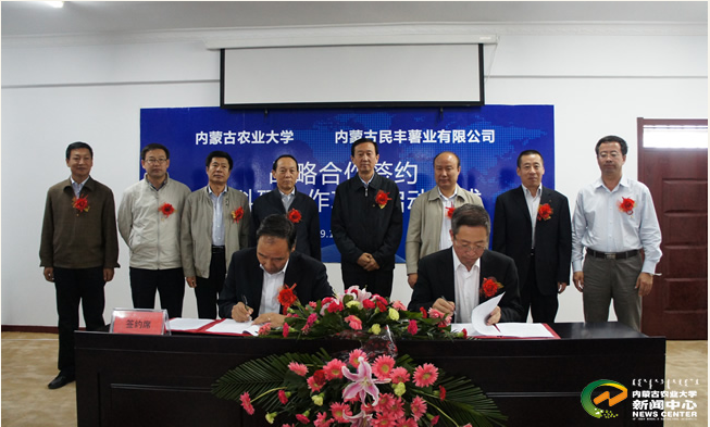 烏蘭察布市委副書記斯琴畢力格、副市長趙錦,內(nèi)蒙古民豐薯業(yè)有限公司董事長盧文兵,內(nèi)蒙古農(nóng)業(yè)大學(xué)黨委書記鄔建剛、副校長芒來出席簽約儀式。芒來副校長與內(nèi)蒙古民豐薯業(yè)有限公司總經(jīng)理張國在合作協(xié)議上簽字。