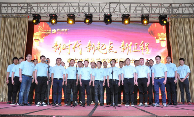 大會(huì)以播放短片的形式回顧了公司一年來的各項(xiàng)業(yè)務(wù)發(fā)展情況和取得的成績。副總經(jīng)理邰志東代表公司首先向全體人員致辭,而后在察右中旗烏蘭牧騎《時(shí)代贊歌》、《守望相助》的歌舞里拉開序幕。頒獎(jiǎng)環(huán)節(jié),由22名優(yōu)秀行政管理人員、生產(chǎn)管理人員、生產(chǎn)服務(wù)人員、銷售人員和14個(gè)最佳效益獎(jiǎng)、最佳質(zhì)量獎(jiǎng)、最佳合作伙伴獎(jiǎng)、優(yōu)秀團(tuán)隊(duì)獎(jiǎng)、董事長特別獎(jiǎng)的獲獎(jiǎng)代表上臺(tái)接受了公司各級(jí)領(lǐng)導(dǎo)的頒獎(jiǎng)和祝賀。同時(shí),原種生產(chǎn)管理中心、脫毒組培中心、原種生產(chǎn)管理中心、物流倉儲(chǔ)中心用《民豐之歌》和《民豐我們的家》兩首大合唱表達(dá)了對(duì)公司的贊美和熱愛之情。最后,大會(huì)在烏蘭牧騎《在你偉大的懷抱里》的舞蹈里走向高潮。表彰大會(huì)和文藝演出穿插進(jìn)行,環(huán)環(huán)相扣,方式新穎,得到了全體員工的一致好評(píng),也為即將開始的新春生產(chǎn)種植工作注入了活力,帶來了動(dòng)力。