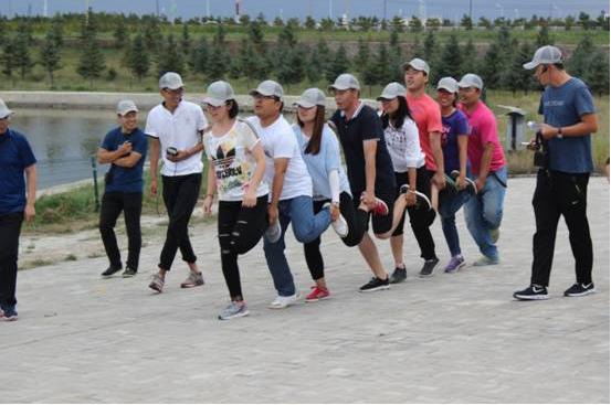本次擴(kuò)展訓(xùn)練分別從德、智、體、美、勞五項(xiàng)趣味進(jìn)行了才藝大比拼。三組人員分別進(jìn)入各自的營(yíng)地,將隊(duì)名、口號(hào)、隊(duì)歌寫(xiě)在旗幟上規(guī)定時(shí)間內(nèi)展示給大家。令所有人都大跌眼鏡的是三組隊(duì)員的隊(duì)名如出一轍,完全一樣,他們都是—《戰(zhàn)狼隊(duì)》。隨后,戰(zhàn)狼三個(gè)隊(duì)展開(kāi)了“肺活量大比拼”、“瞎子”背“瘸子”、“智能撲克傳遞”、“毛毛蟲(chóng)速爬”、“燒烤比賽”等多個(gè)賽事。