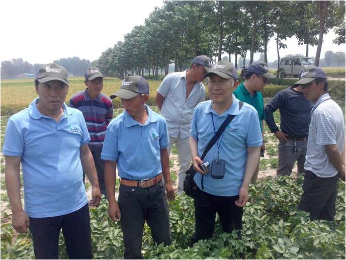 會場上,當(dāng)?shù)剞r(nóng)牧業(yè)局副局長、糧食局局長就此次觀摩會的開展做了重要講話。民豐種業(yè)副總經(jīng)理張文昌介紹了公司基本情況、2105年馬鈴薯行業(yè)發(fā)展?fàn)顩r及優(yōu)質(zhì)馬鈴薯種薯選擇等內(nèi)容;民豐種業(yè)質(zhì)量技術(shù)中心孟正平老師就馬鈴薯種植技術(shù)要點(diǎn)及病蟲害防治做了深入詳細(xì)的講解。隨后,于田間觀摩現(xiàn)場,孟老師與當(dāng)?shù)胤N植戶進(jìn)行了現(xiàn)場互動及答疑,在此同時,我公司與當(dāng)?shù)胤止苻r(nóng)業(yè)領(lǐng)導(dǎo)就當(dāng)?shù)匚磥眈R鈴薯的發(fā)展與合作達(dá)成初步意向。